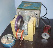 Евгений Константинович Завойский – выпускник Казанского университета, первооткрыватель явления электронного парамагнитного резонанса (ЭПР). Его именем в Казани названа улица в Приволжском районе г. Казани (1984), около Института физики КФУ установлен памятник (2004). Он был настоящим физиком-экспериментатором, который смог из подручных материалов сделать уникальную установку и проводить на ней эксперименты. К сожалению, приборов Евгения Константиновича сохранилось не так много, многие из них были разобраны. Но некоторые все же сохранились. Среди них вот эта домашняя установка Е.К. Завойского по наблюдению ЭПР в металлах.